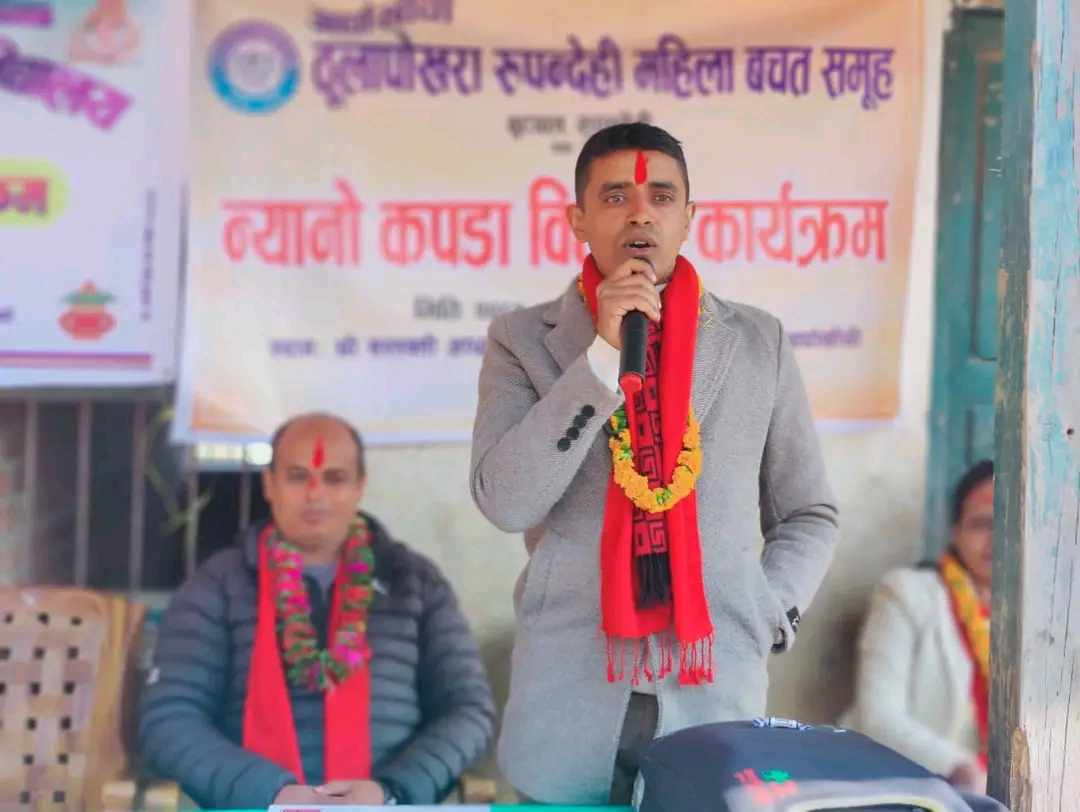 छत्रदेव गाउँपालिका वडा नं. ६ चौवाह स्थित श्री सरस्वती आधारभूत विद्यालयमा अध्ययनरत सम्पुर्ण बालबालिकाहरुका लागि बिधालय मा कार्यक्रम गरि विद्यालय पोशाक तथा न्यानो कपडा वितरण कार्यक्रम सम्पन्न भएको छ ।