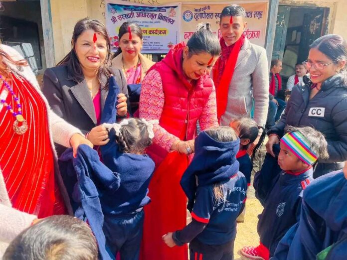 सरस्वती आ. वि. मा १२० जना बिद्यार्थीलाई पोसाक तथा न्यानो कपडा बितरण