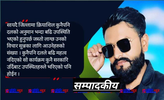 सायदै जिल्लामा क्रियाशिल कुनैपनि दलको अनुमान भन्दा बढि उपस्थिति भएको हुनुपर्छ जस्तो लाग्छ उनको विचार सुन्नका लागि आउनेहरुको संख्या । कुनैपनि दलले बढि महत्व नदिएको सो कार्यक्रमको आयोजना स्थल कुनै सरकारि उर्दिबाट उपस्थितहरुले भरिएको पनि होईन । राष्ट्रिय स्वतन्त्र पाटि अर्घाखाँचीले आयोजना गरेको उत्त कार्यक्रम सो पाटिलाई पनि कम चुनौतिको थिएन । पाटिका केन्द्रिय सभापति आउँदा सांगठनिक हिसावले खासै बलियो नरहेको अवस्थामा कति उपस्थित गराउन सकिएला भन्नेमा परिक्षा र समर्थनको भार पत्ता लगाउनु पनि सो पाटिका निम्ति कार्यक्रम गर्नु आवस्यक त थियो नै तथापि उनिहरुको अनुमानलाई पनि फ्लप ख्वाउने गरि जिल्लामा रहेका क्रियाशिल दलहरुलाई जिल्ल पार्दै उनिहरुका कार्यकर्ताहरु नै कार्यक्रम स्थल भर्न पुगेको सत्य सामाजिक संजालहरुमा छरपष्ट भएको देखिन्छ ।