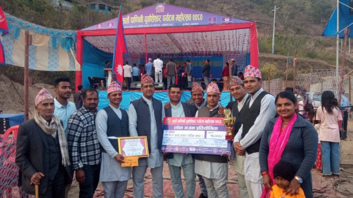 गाउँपालिका स्तरीय भजन प्रतियोगितामा पाणिनि ४ पटौटी चौराहाको रातापानि भजन समूह प्रथम भएको छ । सातै पाणिनि दुर्वाशेश्वर पर्यटन महोत्सवको अवसरमा आयोजित लोकभजन प्रतियोगितामा रातापानि भजन समूह प्रथम भएको हो । प्रथम भएसँगै सो समुहले नगद १५ हजार सहित ट्रफि र प्रमाणपत्र पनि प्राप्त गरेको छ । यस्तै आज भएको प्रतियोगितामा उपल्ला पटौटिको भजन समुह द्धितिय , अडगुरी भजन मण्डली तृतिय र पणेनाको भजन समुह शान्त्वना भएको छ ।