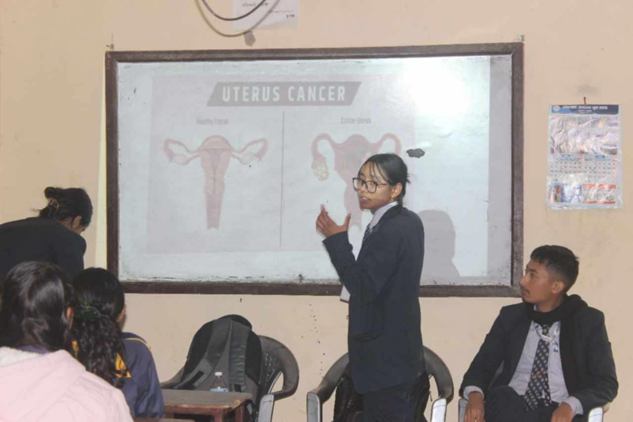 । भने छात्राहरूलाई सेनेटरि प्याडकाे प्रयाेग र समस्या बारे प्रशिक्षण , कक्षा६ र ७ का विद्यार्थीहरूलाई हेण्डराईटिङ्ग र ड्राेईङ् कम्पिटिसन गराई उत्कृष्ट हुनेहरूलाई पुरस्कृत ,साथै छात्र छात्रा सम्मिलित सामुहिक बैठक पनि सम्पन्न गरेकाे सहायक प्रधानाध्यापक माधव पन्थीले बताउनु भयाे ।