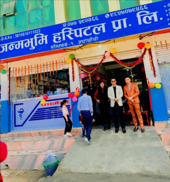 अर्घाखाँचीकाे सन्धिखर्कमा आज देखि निजीक्षेत्रको लगानीमा जन्मभुमि हस्पिटल ओैपचारिक रुपमा सन्चालमा आएकाे छ ।